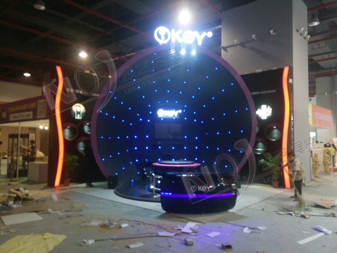 契合KEY的品牌形象和產(chǎn)品特性,采用框型結(jié)構(gòu),再搭配燈具燈光的效果,襯托出展位浪漫、朦朧的氛圍,突出一種尊貴、躍動(dòng)的時(shí)尚品味。