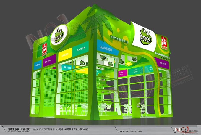 巧妙的運(yùn)用綠色作主色調(diào),著重突出品牌和產(chǎn)品的展示,使整個(gè)展位大氣又明快。