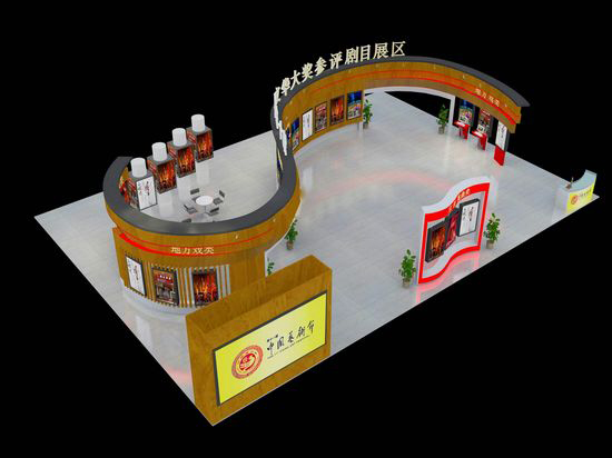 第十五屆文華大獎(jiǎng)參評(píng)劇目展區(qū)主體結(jié)構(gòu)為S型,為“陜”的首字母,代表陜西是東道主。正面是19臺(tái)地方戲曲的展示,背面為19臺(tái)音樂(lè)舞蹈雜技的展示。兩側(cè)的區(qū)域則分別展示了6臺(tái)京劇昆曲和13臺(tái)話劇兒童劇。展區(qū)以紅色、黃色為主色調(diào),顯得莊重大方。