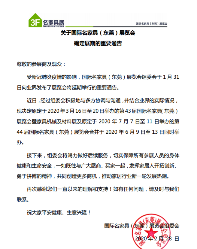 根據(jù)東莞名家具展設(shè)計搭建公司領(lǐng)藝展覽了解到,第43跟44屆國際名家具(東莞)展覽會暨家具機(jī)械及材料展將合并于6月9-13日同時舉行。如需東莞名家具展設(shè)計請聯(lián)系領(lǐng)藝展覽,希望我們能在東莞名家具展搭建上為您添磚加瓦,祝各位朋友收獲多多,滿載而歸!