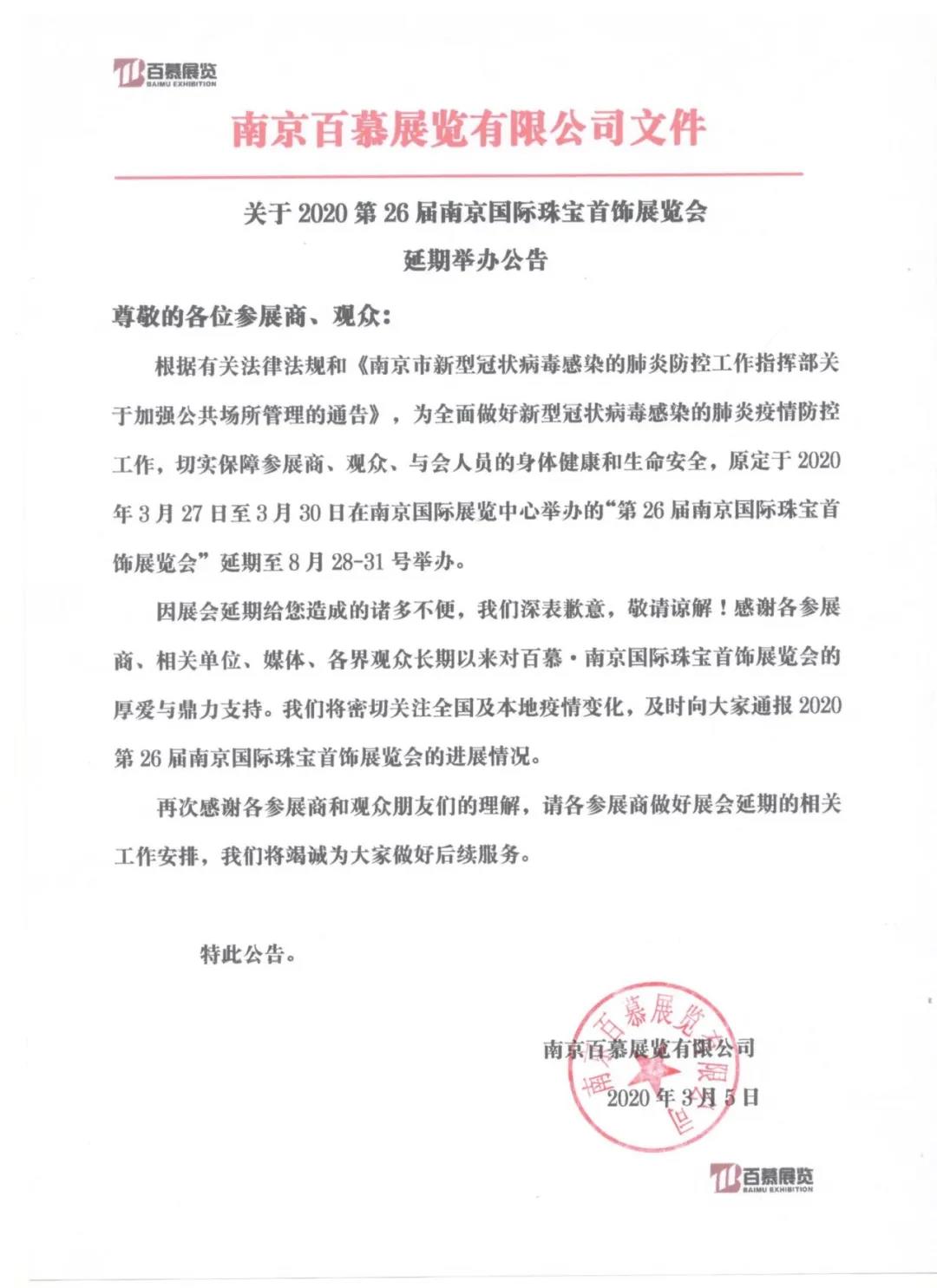 根據(jù)珠寶展設(shè)計(jì)搭建公司領(lǐng)藝展覽了解到,原定于2020年3月27-30日在南京國際展覽中心舉辦的第26屆南京國際珠寶首飾展覽會(huì)延期至8月28日-31日舉辦。如需珠寶展展臺(tái)設(shè)計(jì)請聯(lián)系領(lǐng)藝展覽,希望我們能在珠寶展展臺(tái)搭建上為您添磚加瓦,祝各位朋友收獲多多,滿載而歸!