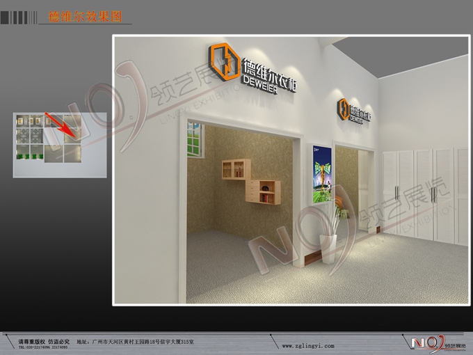 契合德維爾的品牌形象和產(chǎn)品特性,采用框型結(jié)構(gòu),再搭配燈具燈光的效果,襯托出展位時尚、簡約的氛圍,突出一種融合、個性的時尚品味。